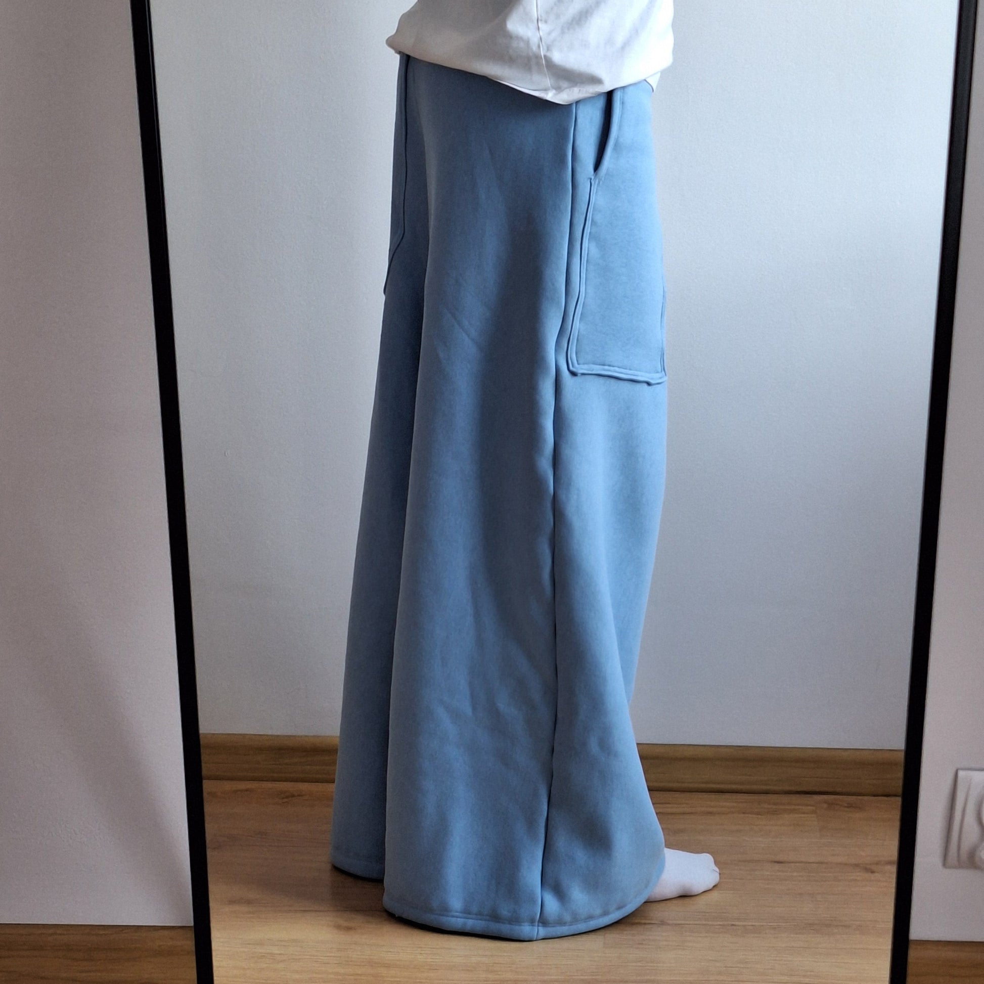 Baggy w Błękicie: Połączenie luzu, nowoczesnej formy i maksymalnej wygody. Szeroki, swobodny krój inspirowany stylem streetwear sprawia, że spodnie świetnie układają się na sylwetce i nadają stylizacji wyrazistego, modnego charakteru. Idealne zarówno do miejskich zestawów, jak i na komfortowe dni w domu.