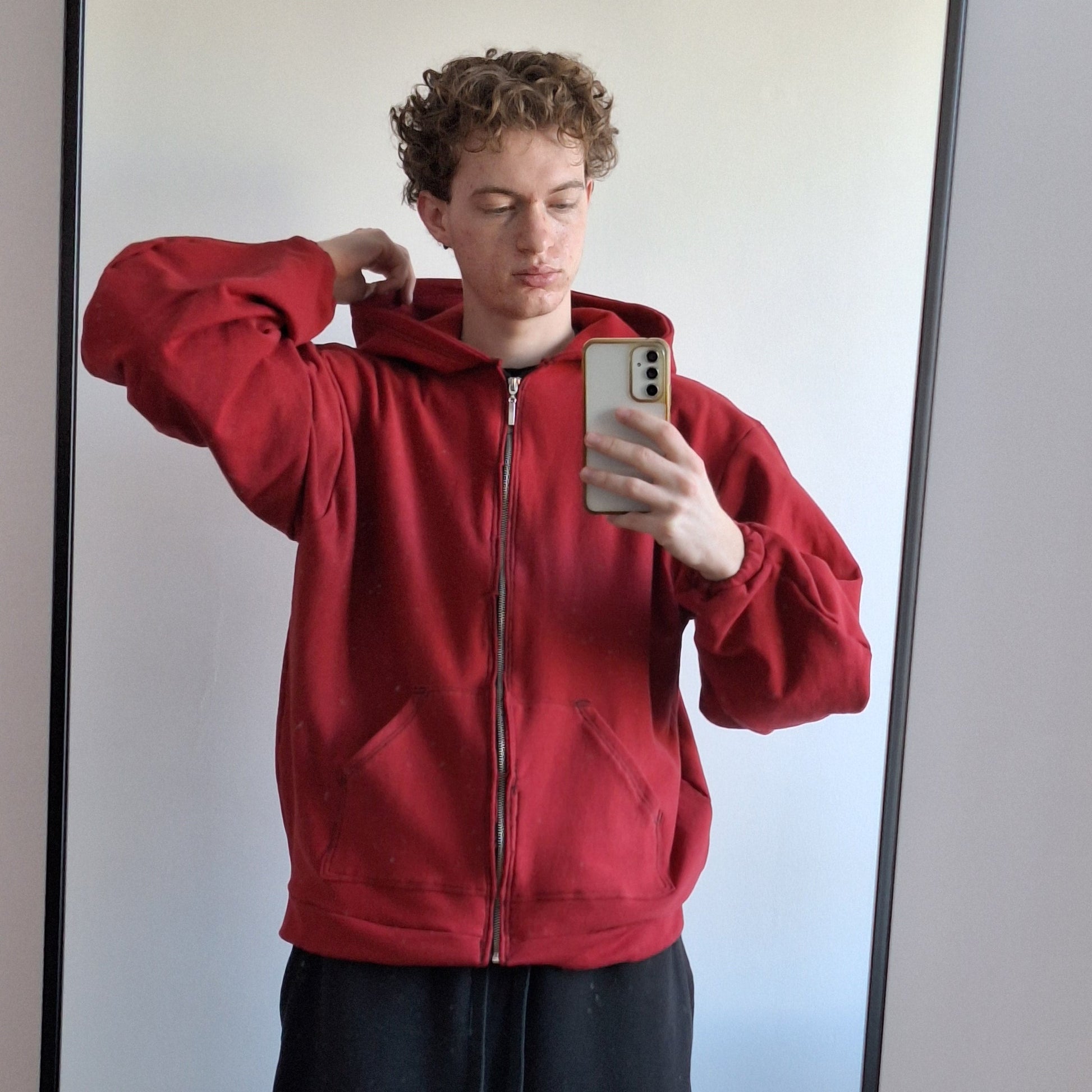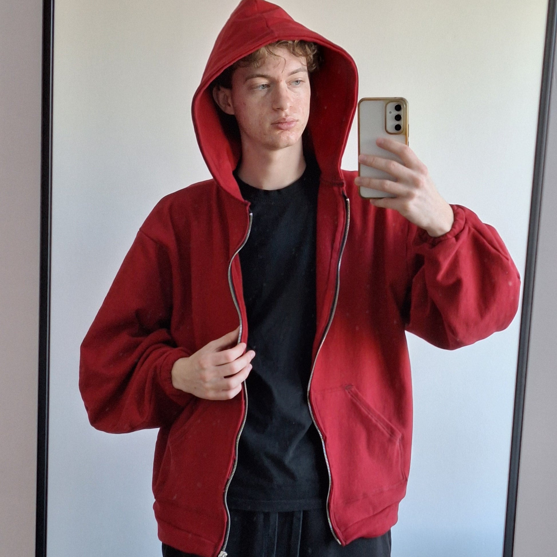 Czerwony Zip: Połączenie wygody, funkcjonalności i wyrazistego stylu. Wykonana z miękkiej dzianiny z pętelką od wewnątrz, zapewnia komfort noszenia i przewiewność przez cały dzień.